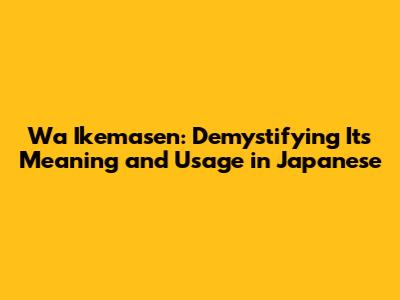 Wa Ikemasen: Unveiling The Meaning And Usage In Japanese