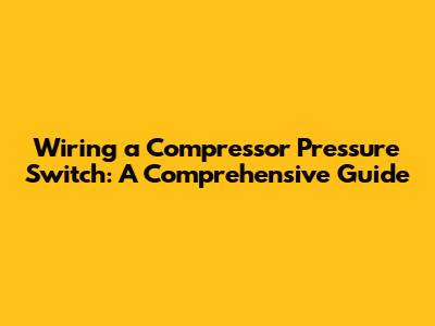 Wiring A Compressor Pressure Switch: A Simple Guide
